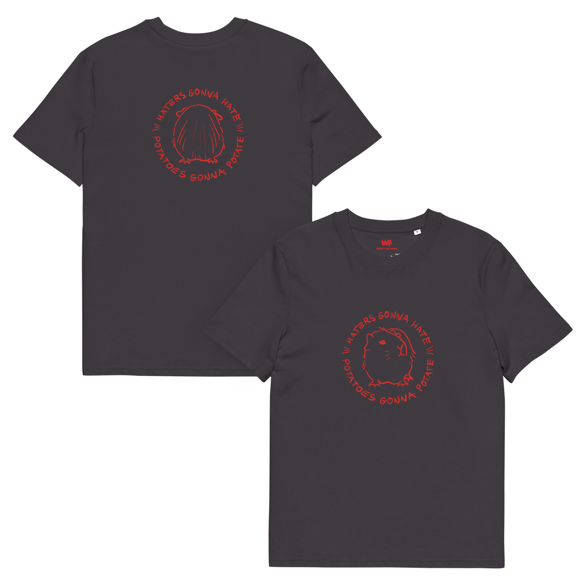 Unisex organic cotton t-shirt GUINEA PIG "Haters gonna hate, potatoes gonna potate" (red print)